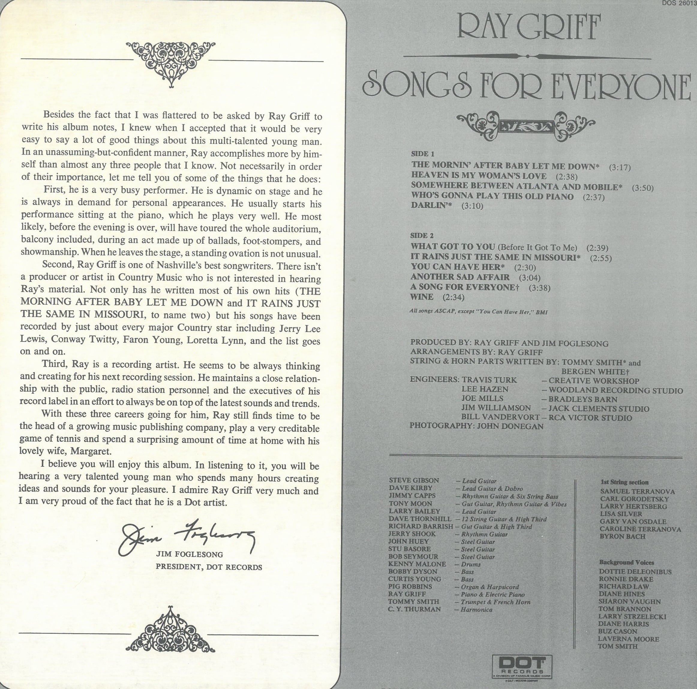 RAY GRIFF / SONGS FOR EVERYONE (LP) USA盤