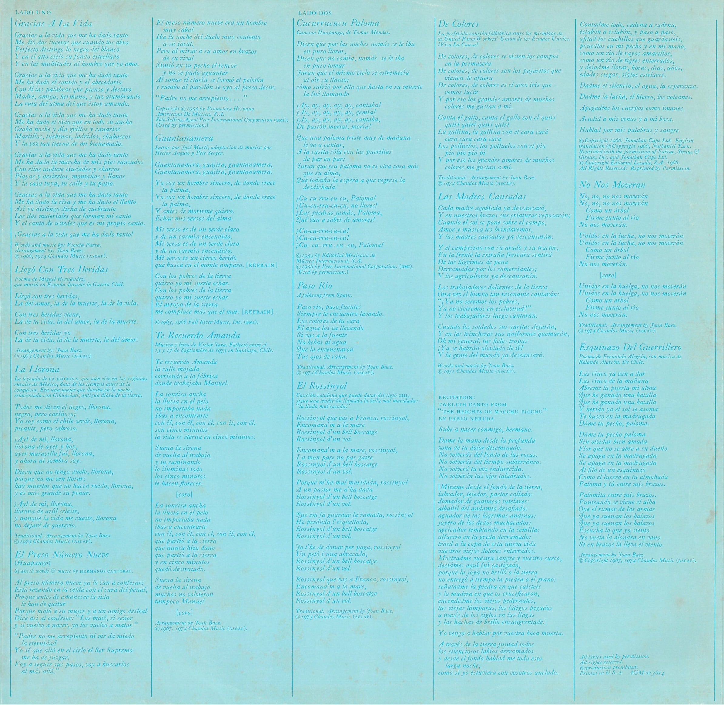 Arranged By – Joan Baez (曲: A1 to A3, A6, B2 to B7)