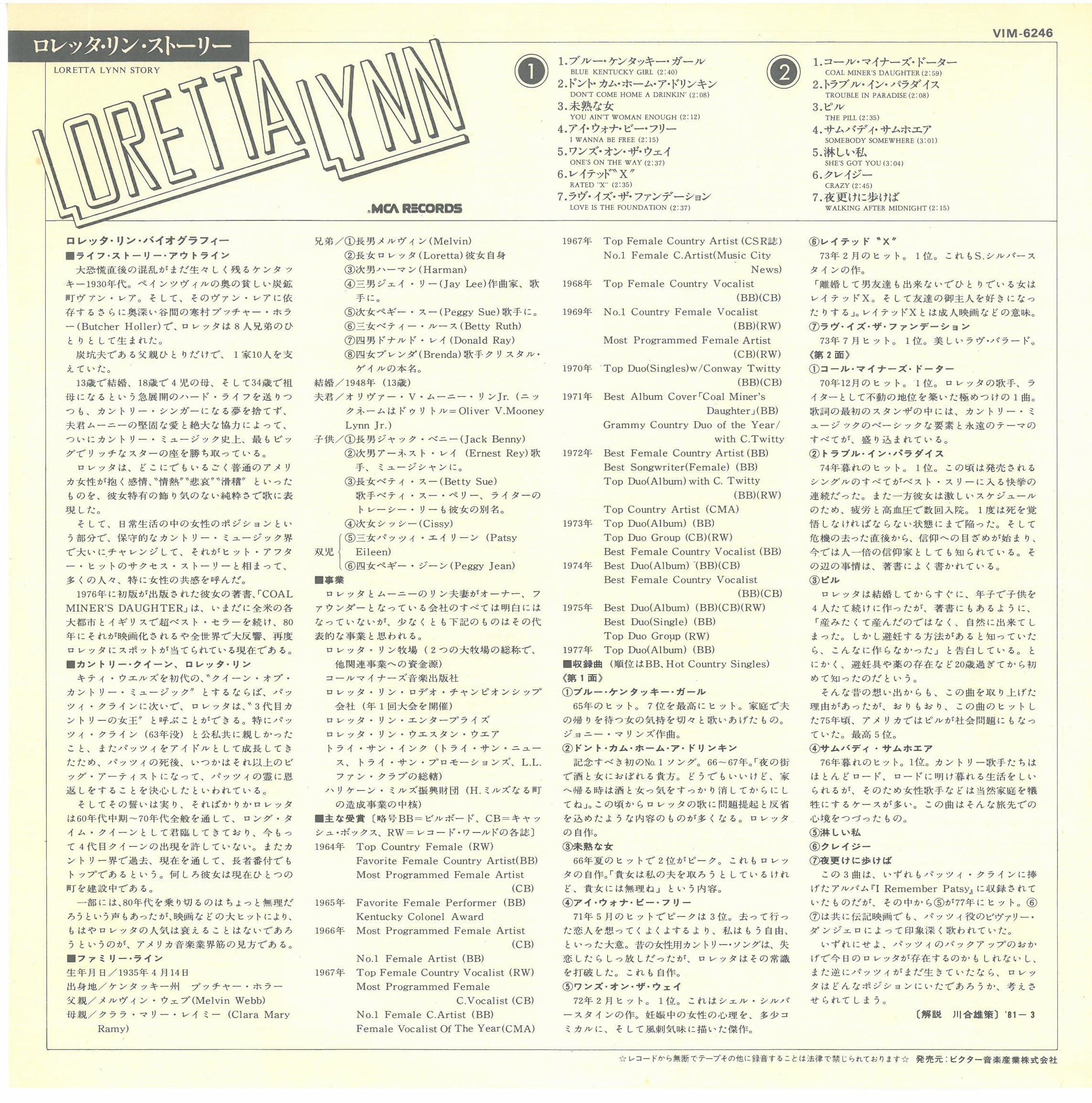LORETTA LYNN / STORY (LP) 日本盤