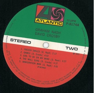 GRAHAM NASH / DAVID CROSBY / GRAHAM NASH / DAVID CROSBY (LP) 日本盤