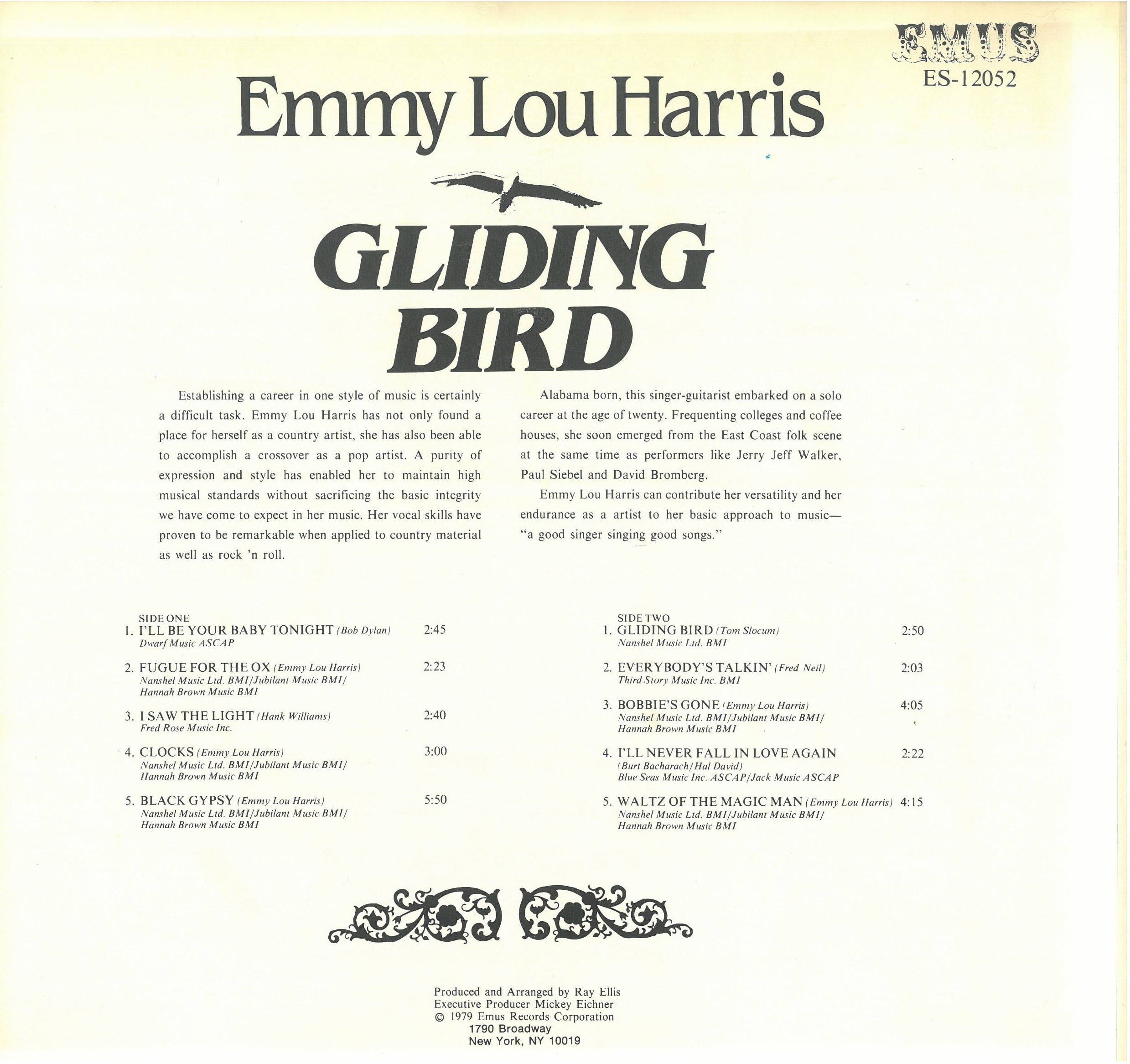 In 1979, Emmylou sued Emus records and various other defendants for copyright infringement connected to the re-release of this record. (See EMMYLOU HARRIS, dba HANNAH BROWN MUSIC and EMMYLOU HARRIS,Plaintiff-Appellees, v. EMUS RECORDS CORPORATION, ROULETTE RECORDS, INC.,et al., [readily available on the web].) Here is some language from the decision by the US District Court for the Central District of California: