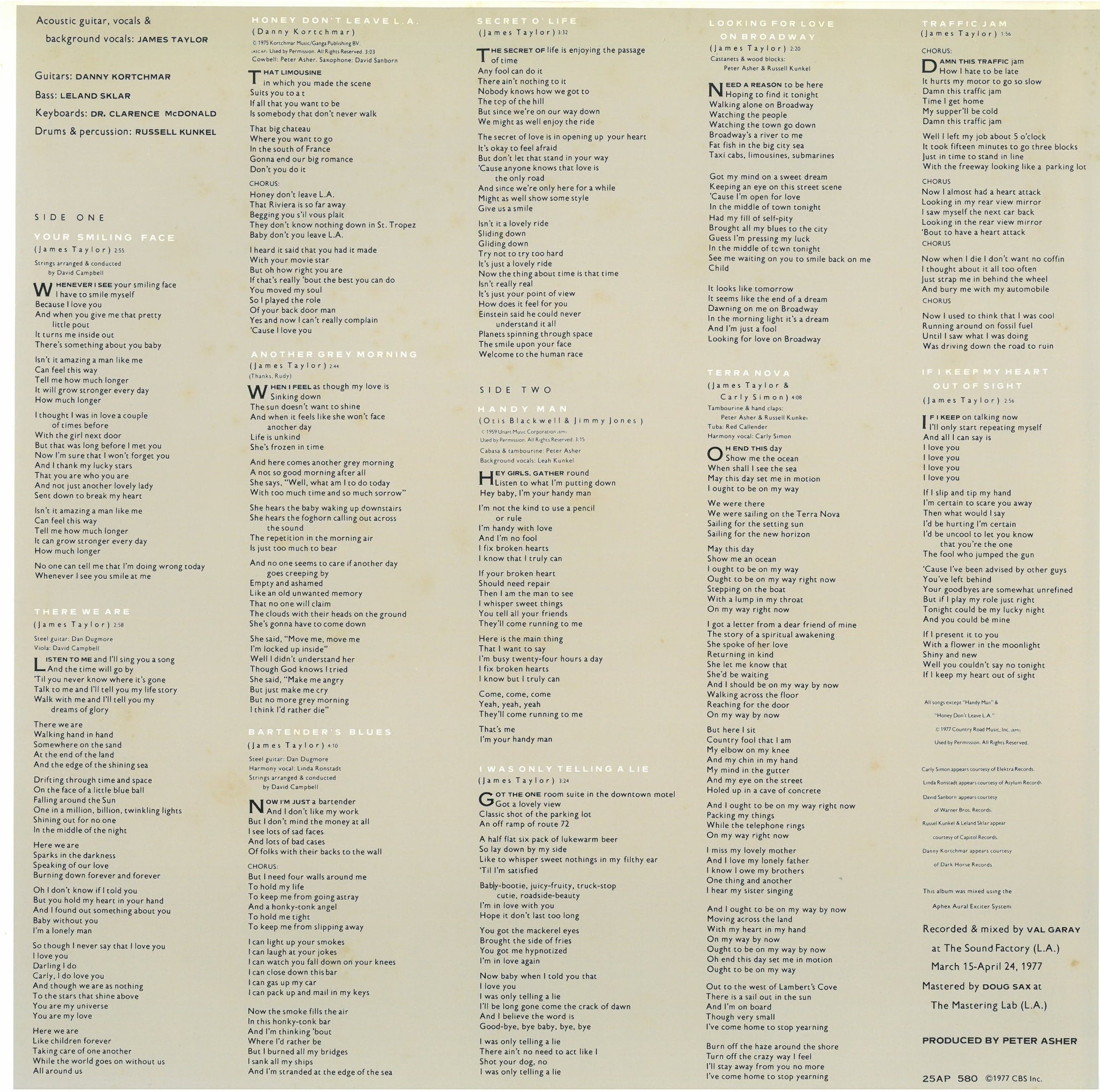 Recorded & mixed at The Sound Factory (L.A.) March 15-April 24, 1977.