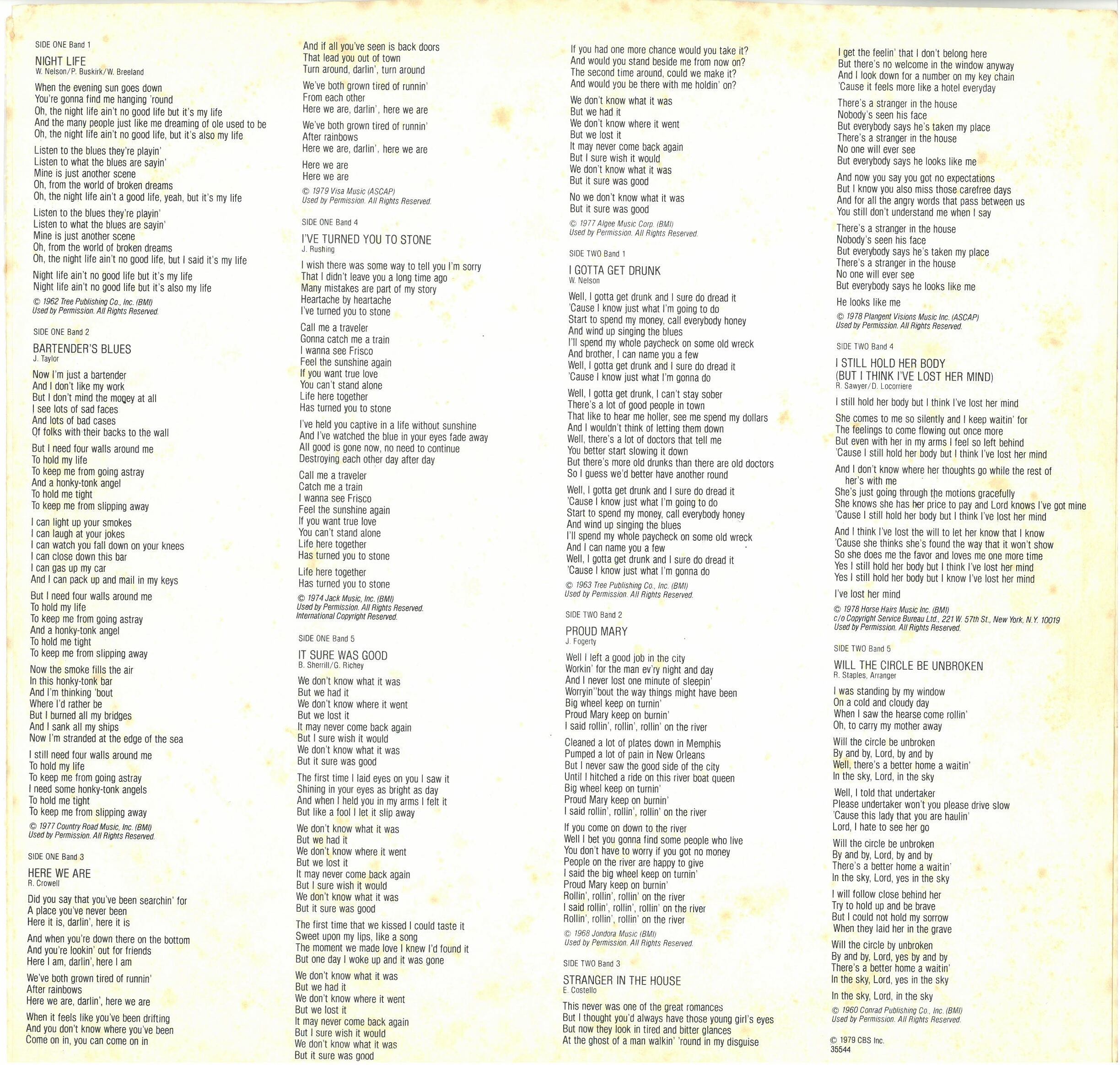 Harmonica [Harp] – Mickey Raphael (曲: A3; B1)