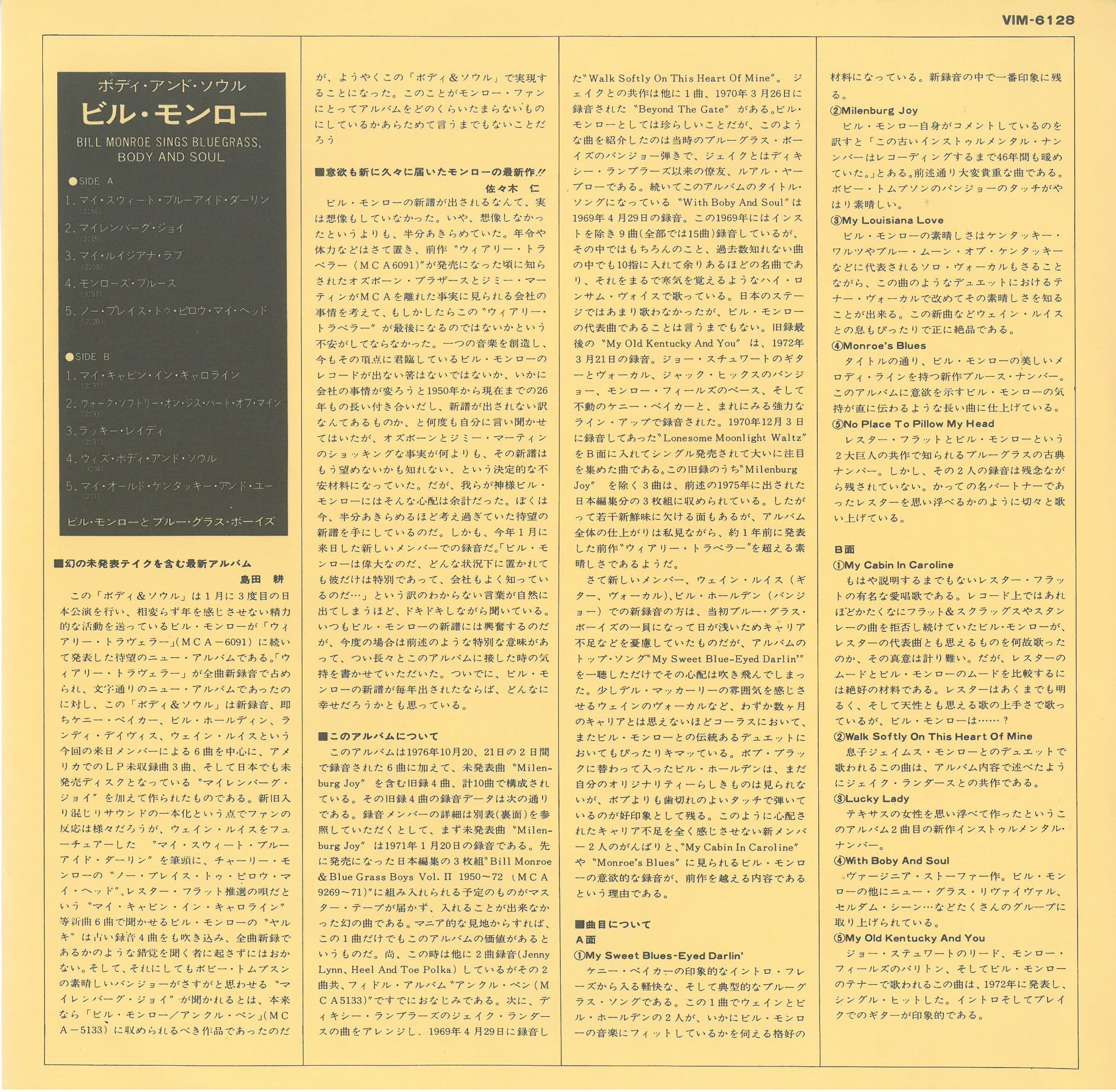 comments on sleeve by Bill Monroe: