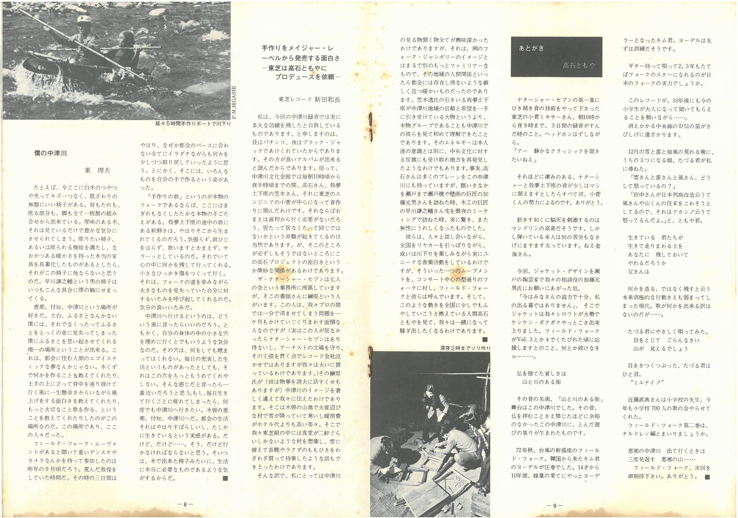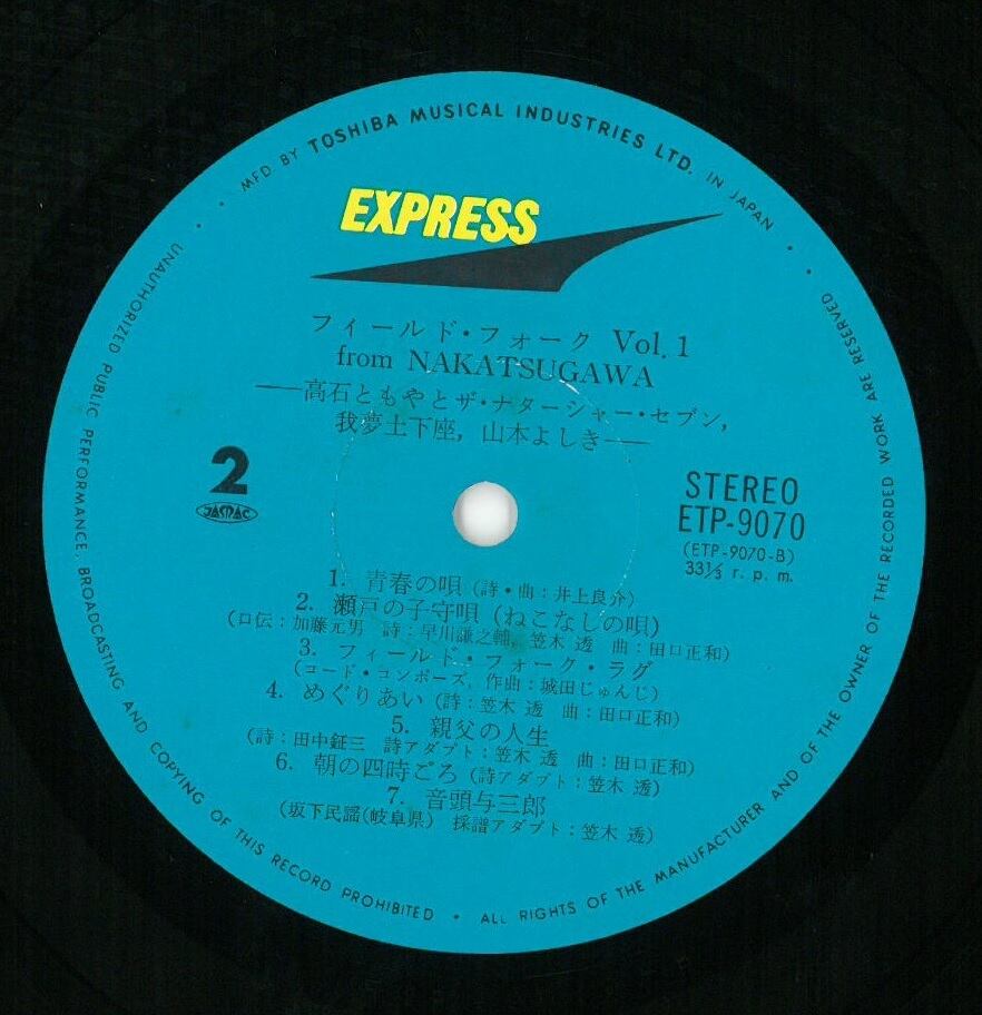 高石ともやとザ・ナターシャー・セブン,我夢土下座、山本よしき / THE FIELD FOLK FROM NAKATSUGAWA VOL.1 (LP) 日本盤