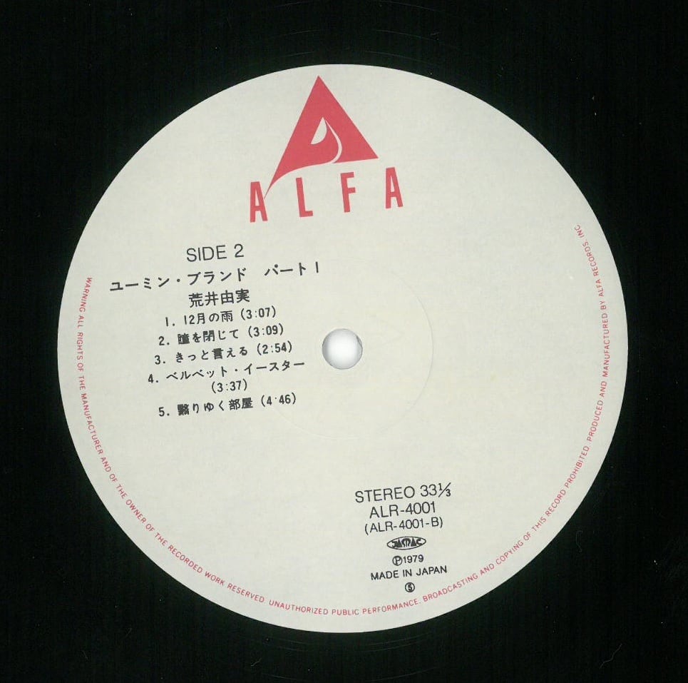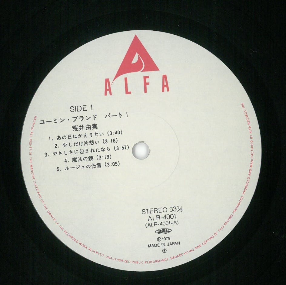 LP (日本盤) ALR-4001 STEREO ALFA RECORDS 1979年