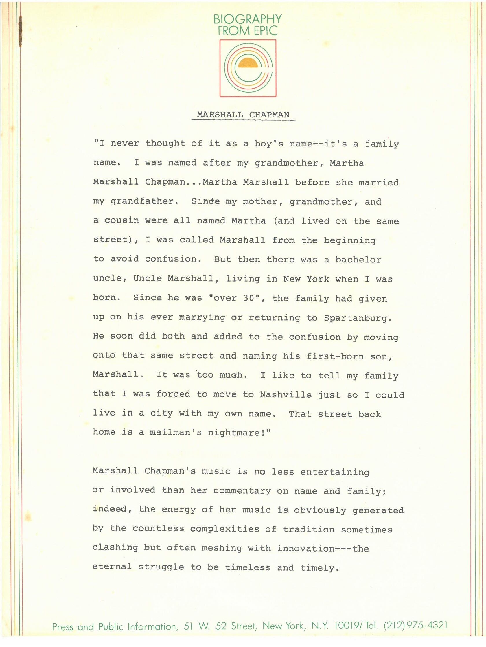 Guitar, Lead Vocals, Harmony Vocals – Marshall Chapman