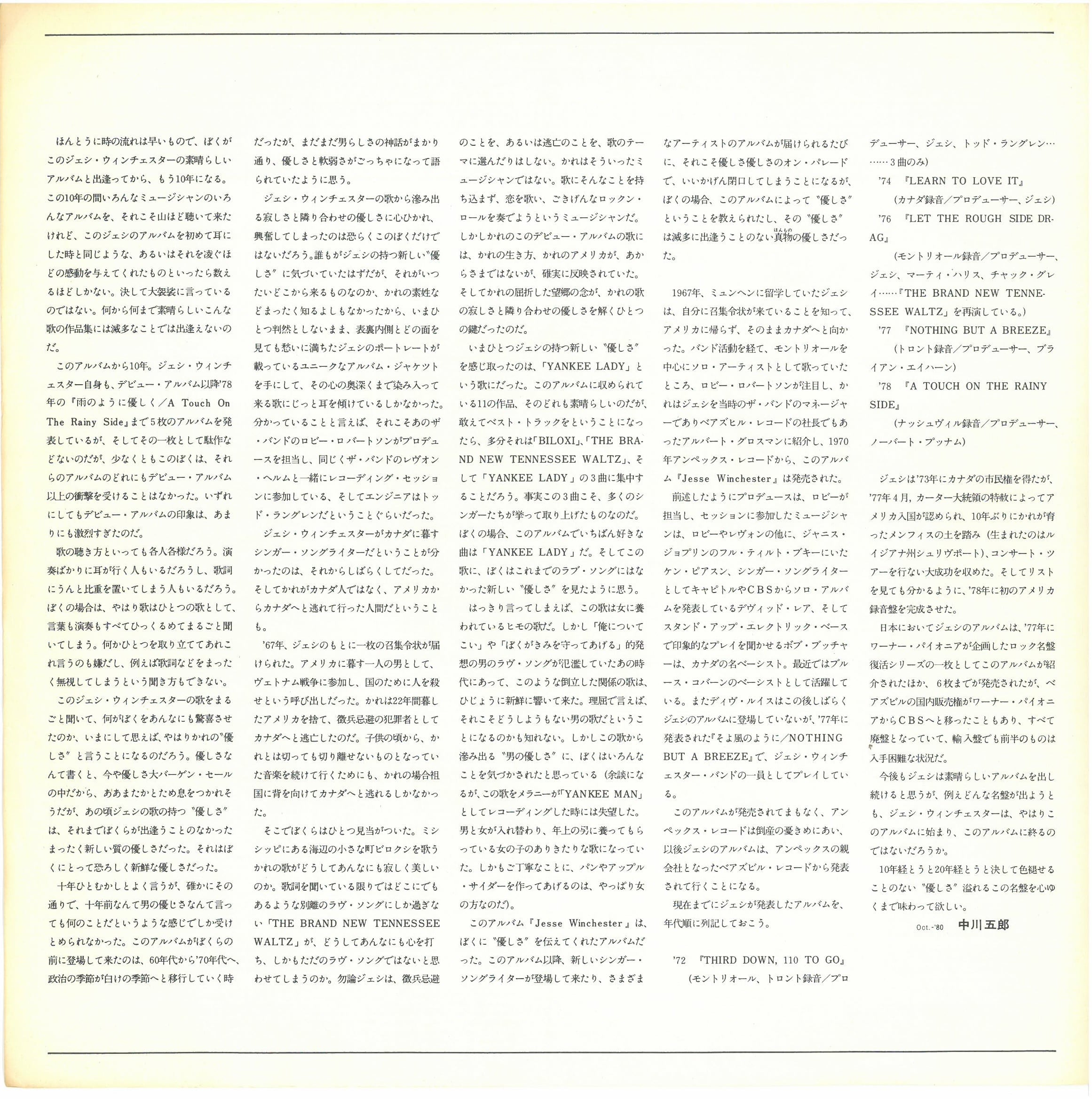 Written-By – Jesse Winchester (曲: A1, A2, A4 to B6)