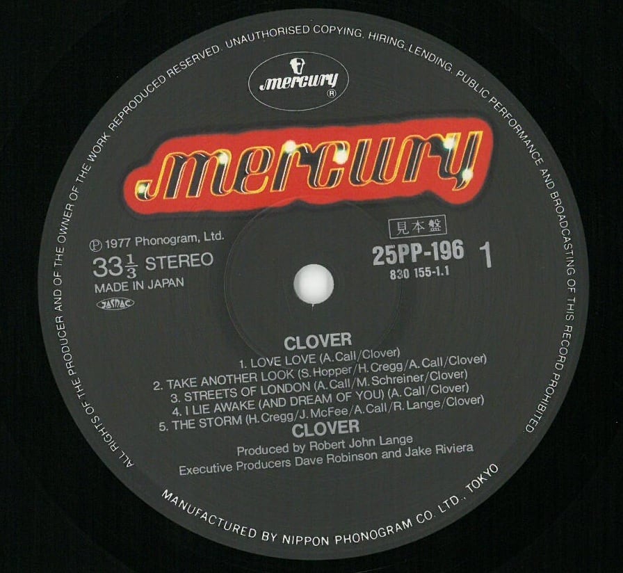 Written-By – A. Call, Clover, H. Cregg, J. McFee, R. Lange 5:57