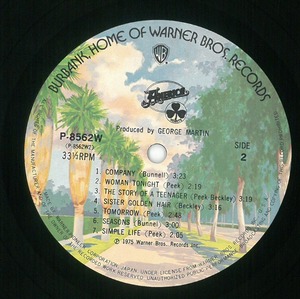 このアルバムジャケットはシミ、変色が出やすいタイプなのですが結構綺麗な状態と思います。日本盤のみシングルカットされていたSimple Lifeが収録されています。