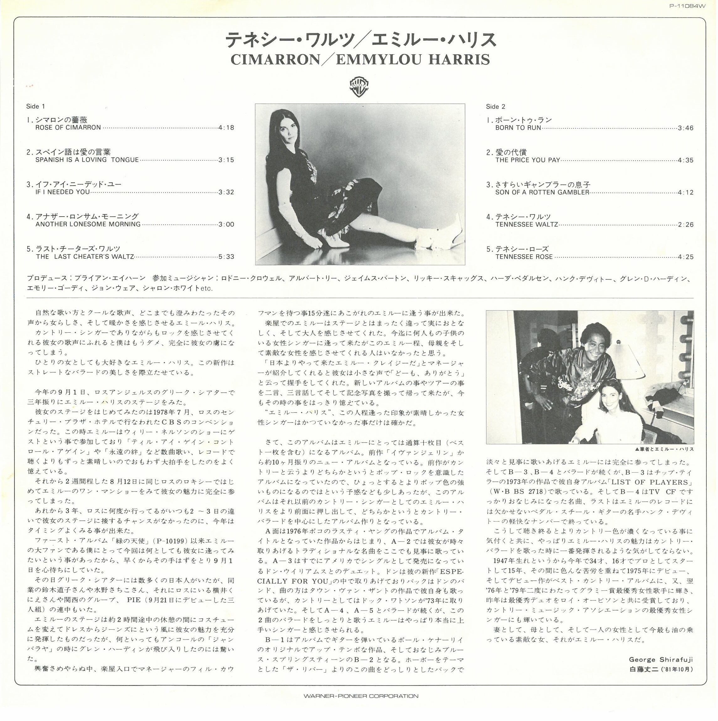 Engineer – Brian Ahern, Donivan Cowart, Stuart TaylorHarmony Vocals – Barry Tashian (tracks: A1, A2), Cheryl White Warren (tracks: A5, B5), Donivan Cowart (tracks: A1), Emmylou Harris (tracks: A3, A4, B1), Fayssoux Starling (tracks: B4), Herb Pedersen (tracks: B1), Ricky Skaggs (tracks: A5, B5), Sharon White (tracks: A5, B5)