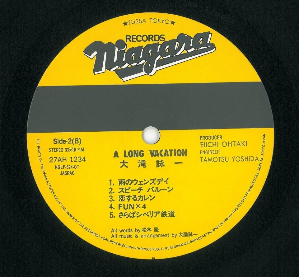 LP (日本盤) 27AH 1234 STEREO NIAGARA RECORDS 1981年