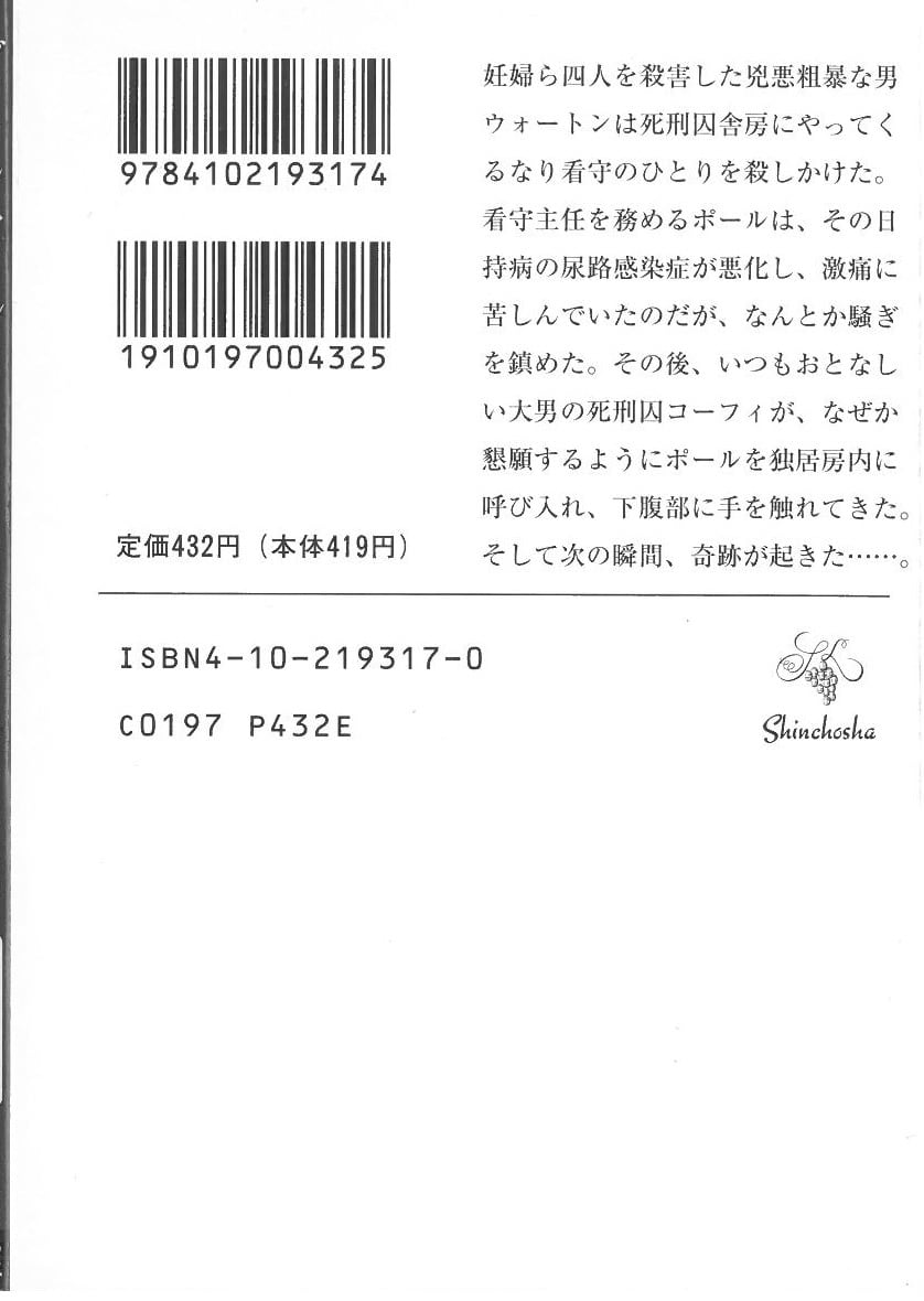 グリーン・マイル (3) コーフィの手 / スティーブンキング (本) 新潮文庫